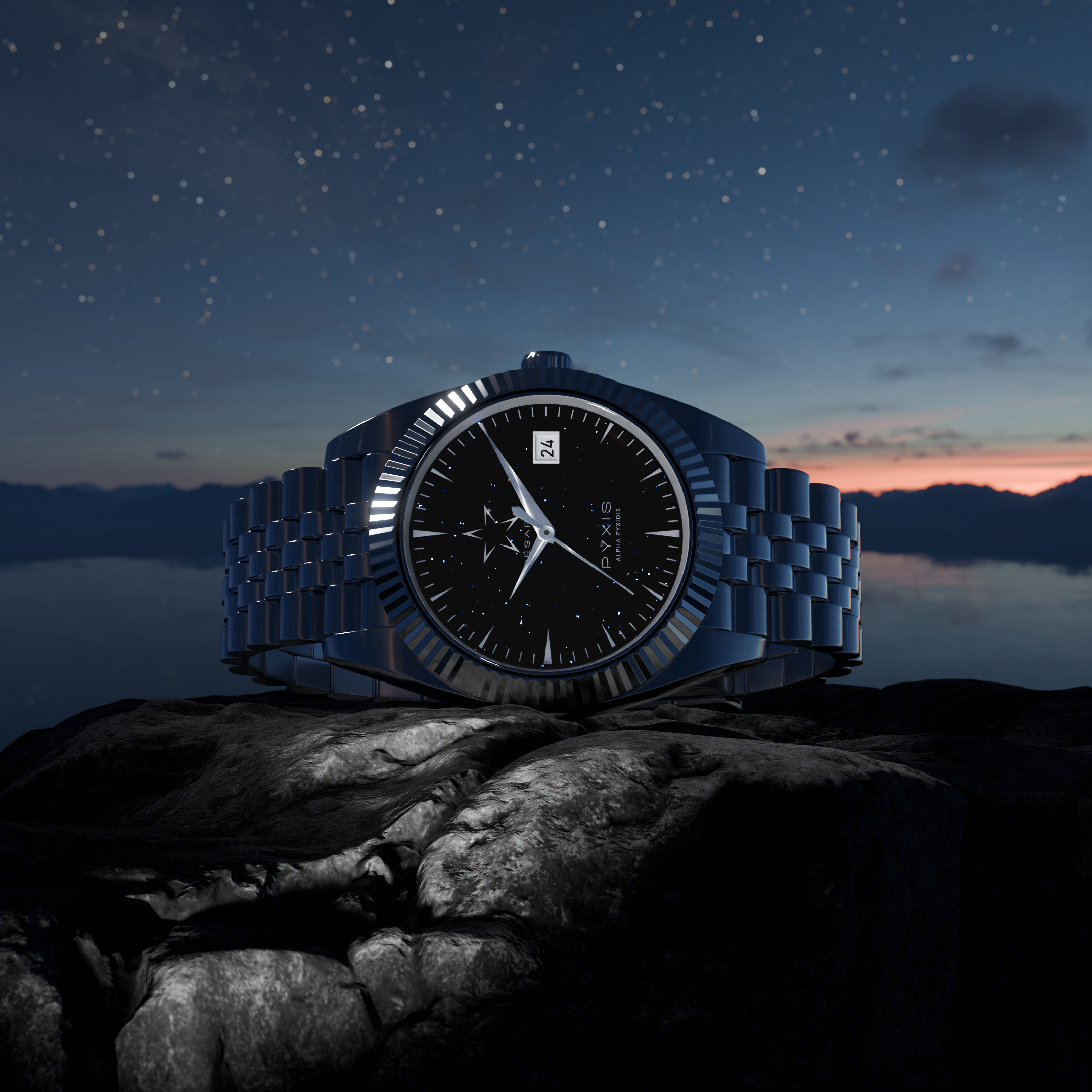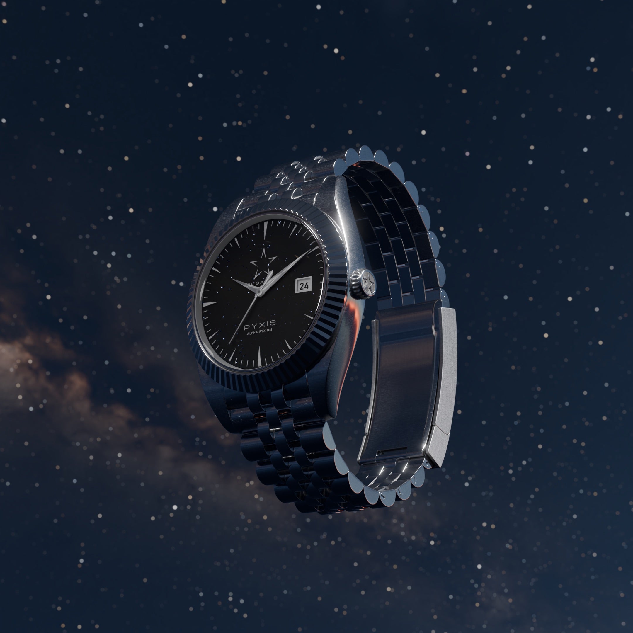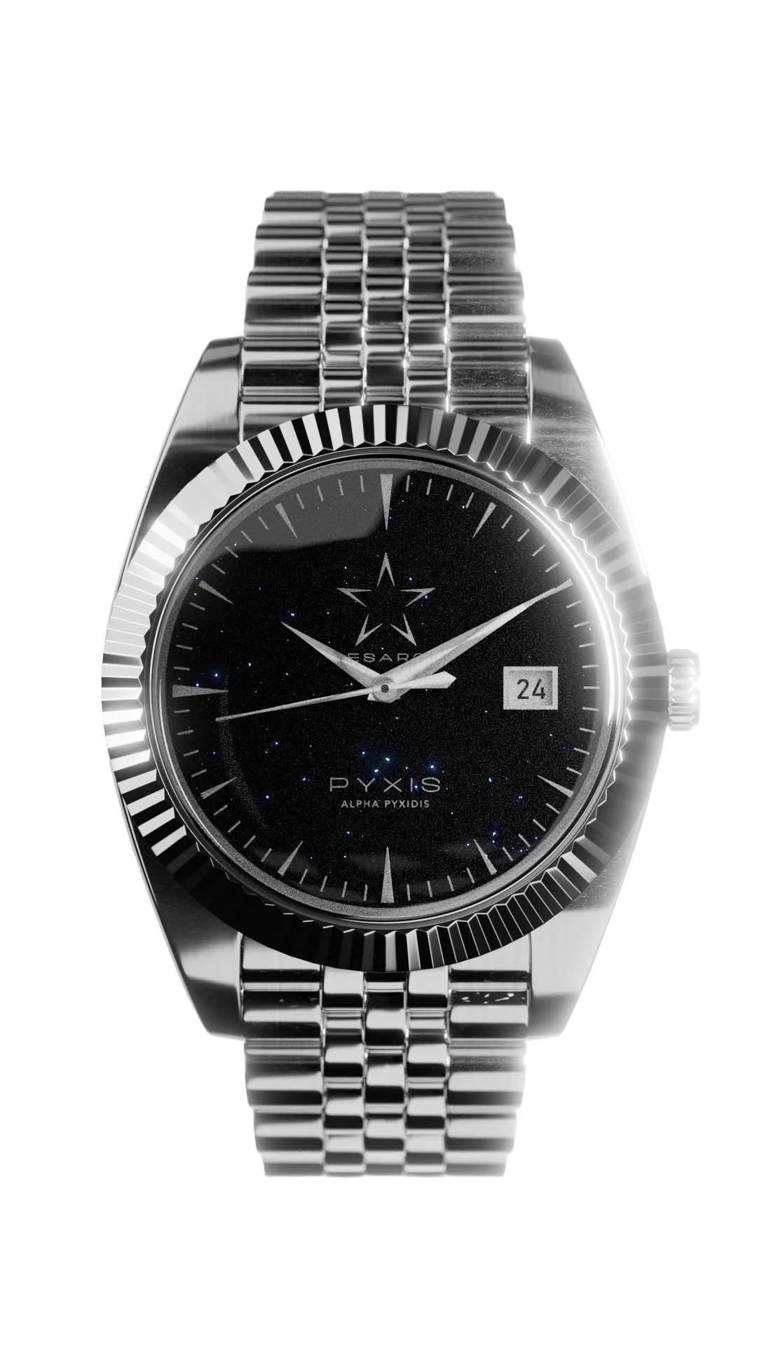 Découvrez l’Alpha Pyxidis, une montre automatique conçue avec un mouvement NH35 précis, un bracelet jubilé en acier inoxydable 304 et un boîtier cannelé en acier 316. Protégée par un verre saphir ultra-résistant, elle incarne la durabilité et l’élégance. Inspirée par les étoiles, cette montre allie subtilement raffinement et performance.
